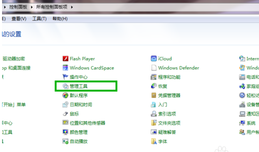 在控制面板设置界面,找到“管理工具”选项