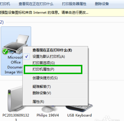 找到你的打印机并对其鼠标右键,选择打印机属性