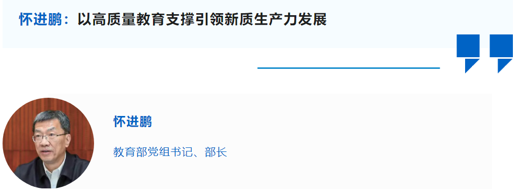 习近平总书记围绕新质生产力发表一系列重要论述,深刻回答了“什么是新质生产力、为什么要发展新质生产力、怎样发展新质生产力”的重大问题,极大丰富和拓展了马克思主义生产力理论,体现了我们党对生产力发展规律的认识和把握达到新的高度,丰富了习近平经济思想的内涵,为推动高质量发展提供了科学指引。要提高政治站位,深刻认识新质生产力的科学内涵,充分理解新质生产力对中国式现代化和民族复兴的极端重要性,切实增强教育在发展新质生产力中的使命担当,更好以高质量教育支撑引领新质生产力发展。